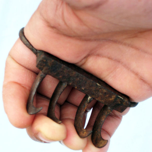 A Bagh nahk is a weapon originating in India that is often called Tiger Claws, due to their resemblance to the feline's features! Theeeeeeeey're GREAT! (at doing, y'know, what weapons do)